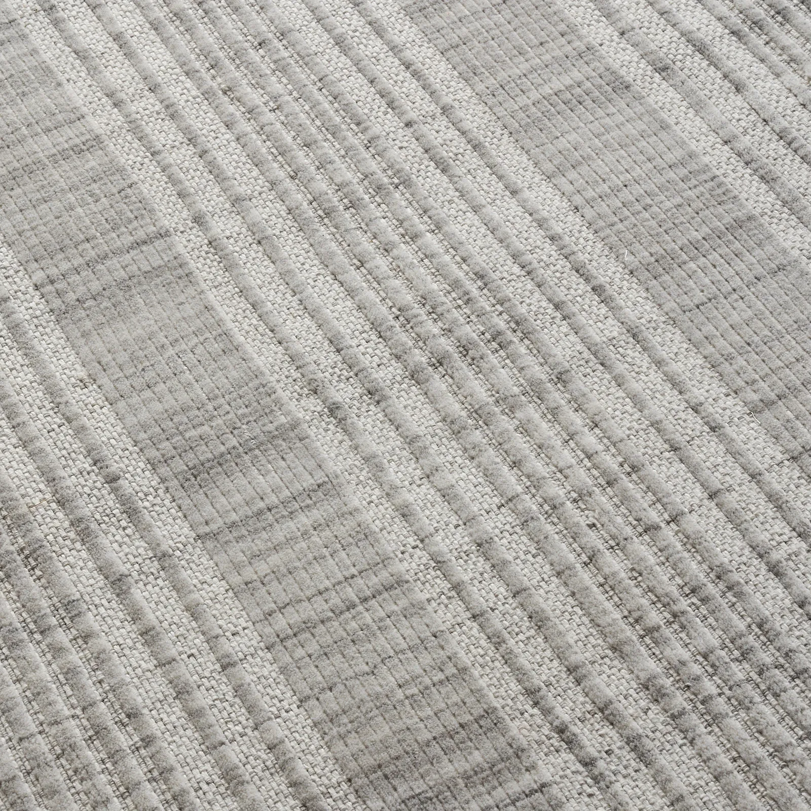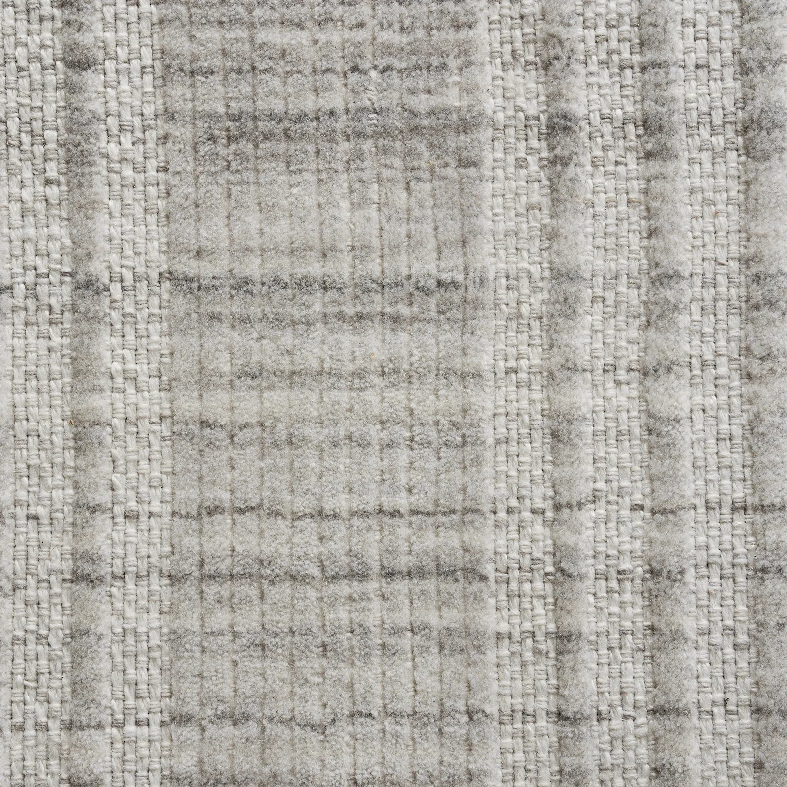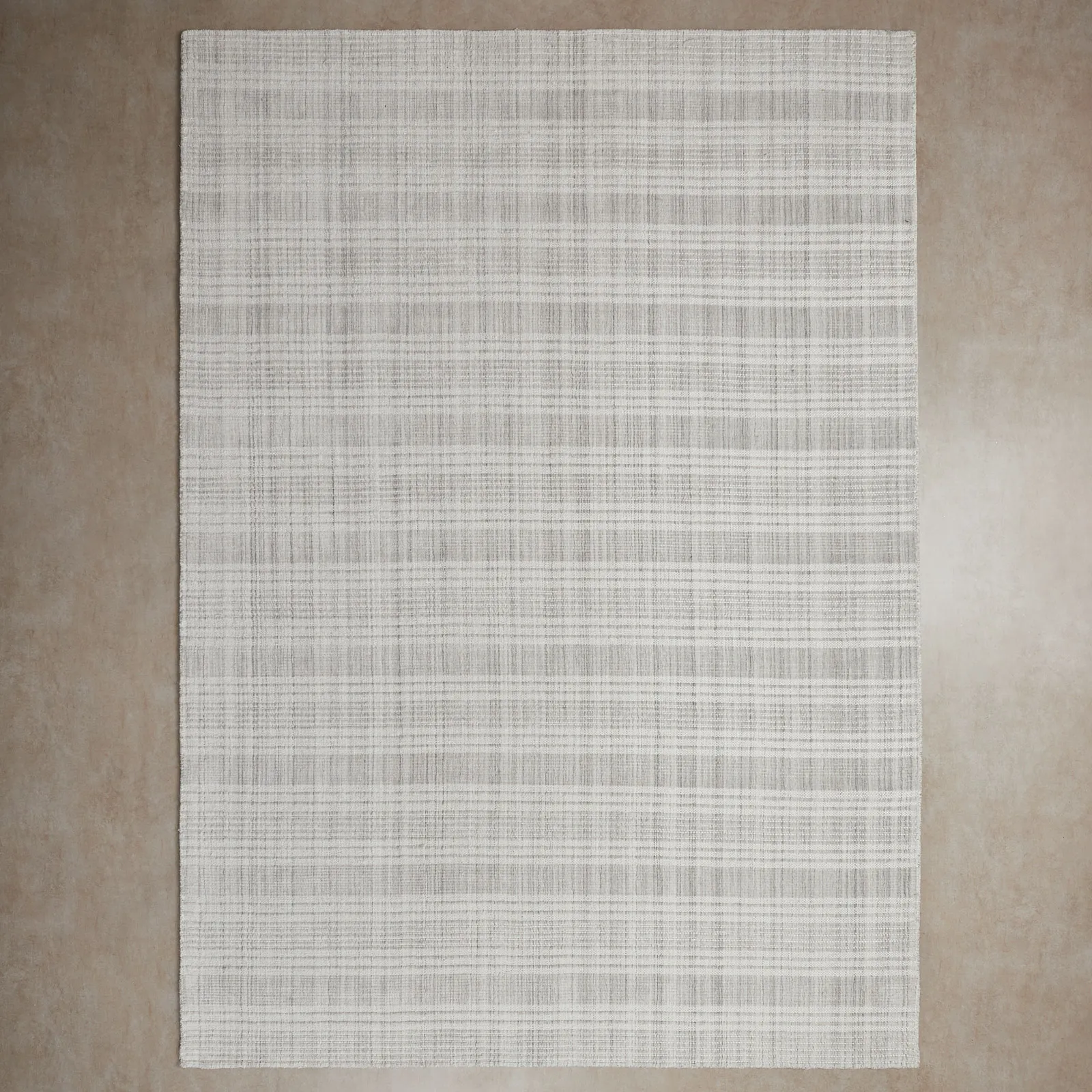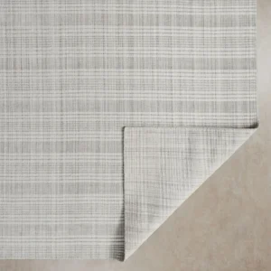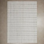 The Audrina floor rug features a sophisticated pattern, exuding understated elegance. Its design showcases a subtle plaid motif, blending shades of grey and white for a tranquil aesthetic.