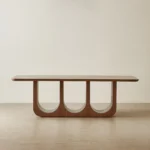Each curve adds a sense of movement and architectural grace. It strikes a balance between strength and elegance. Designed to seat 8 to 10, it’s a table made for connection, conversation, and the slow rituals of shared meals.