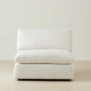 Dressed in Arctic White fabric, the Elora II Armless Sofa offers quiet comfort and design freedom. Its wide, cushioned seat and soft backrest create a relaxed, grounded feel.