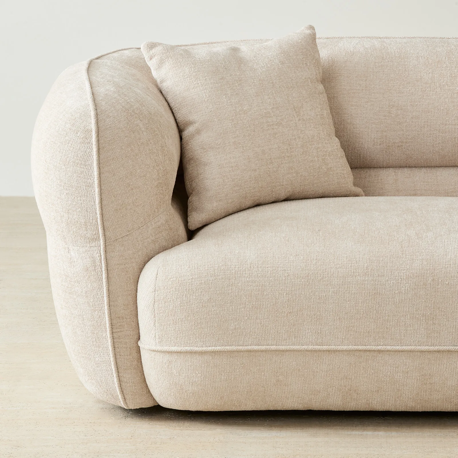 The cream fabric keeps the look clean, stylish and versatile. Matching cushions add comfort while completing the form.