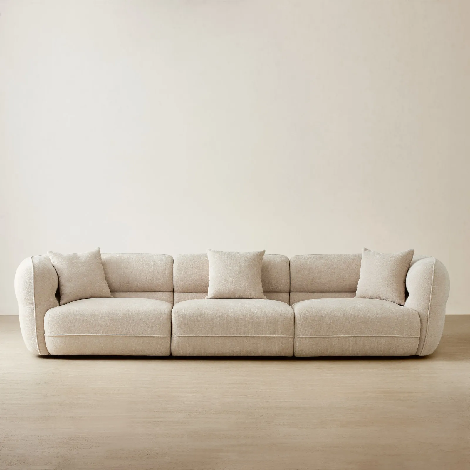 The Isabella 3-Piece Modular Sofa combines plushness with modern curves. Its modular design works equally well for solo relaxation, movie nights, or casual hosting.