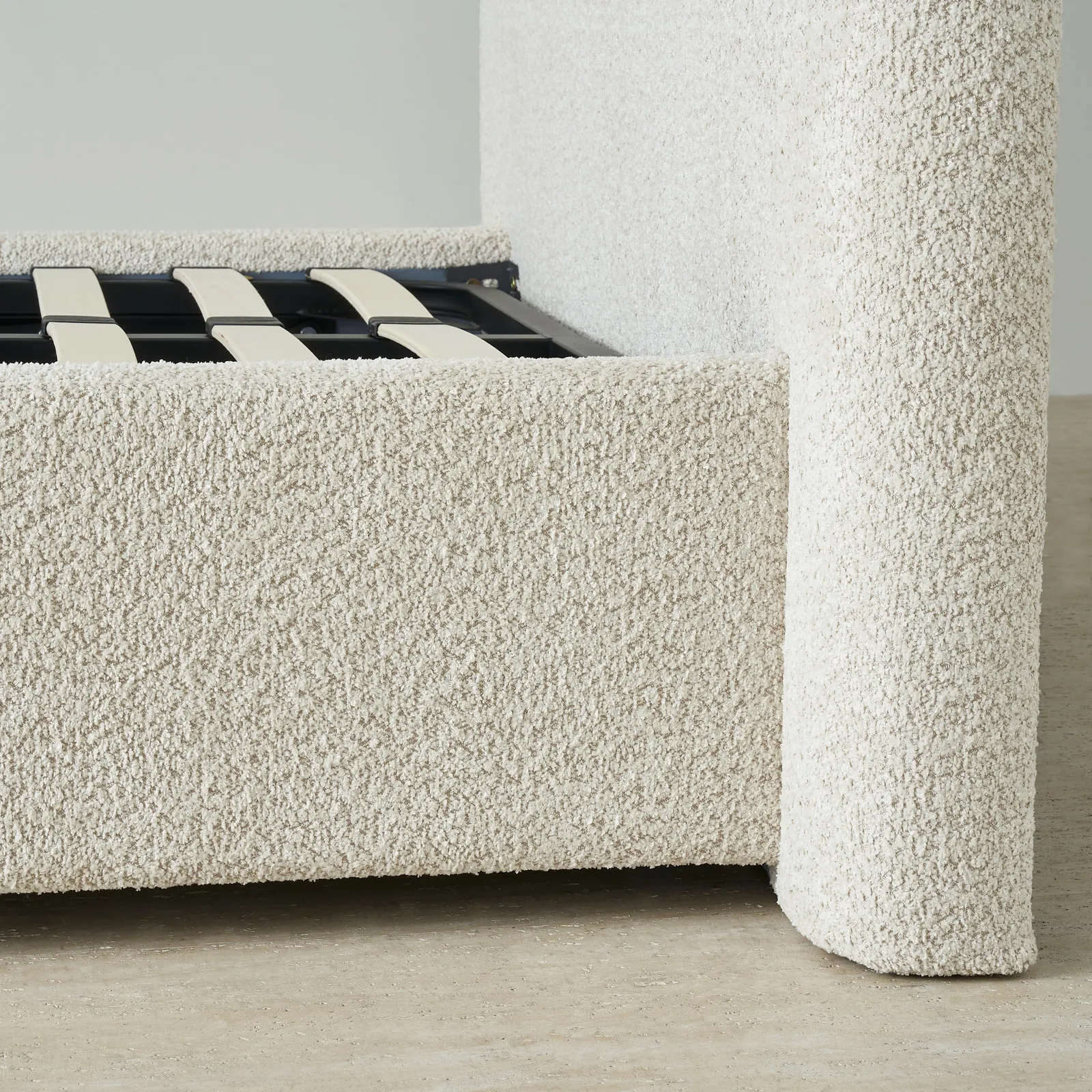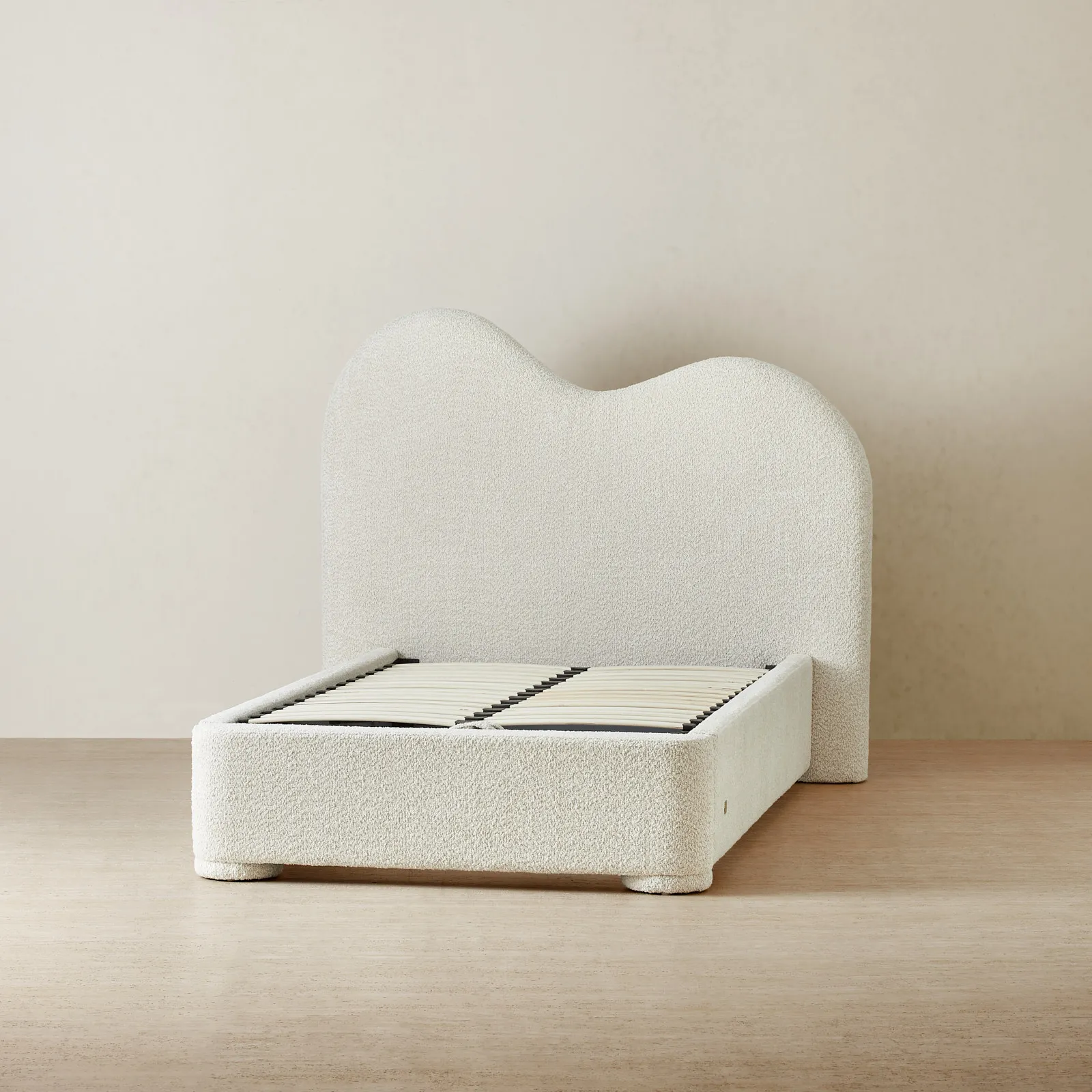 Its low frame and rounded edges create a grounded, balanced silhouette. Designed with intention, it brings a sense of calm and quiet luxury to the bedroom.