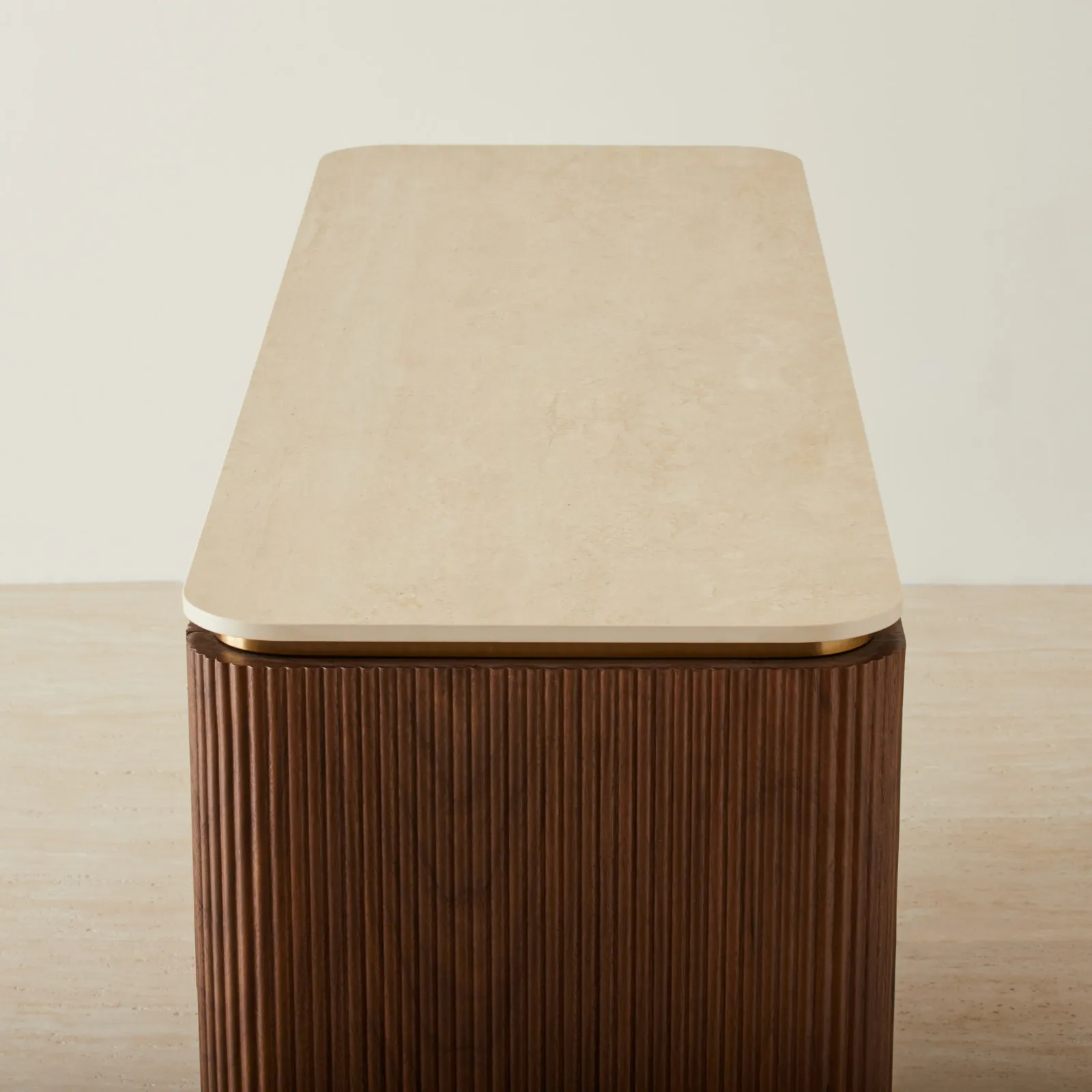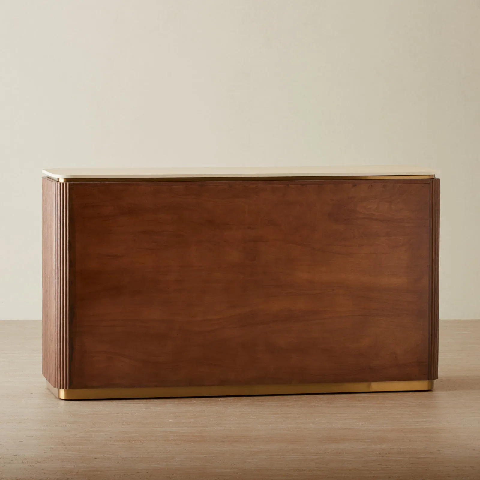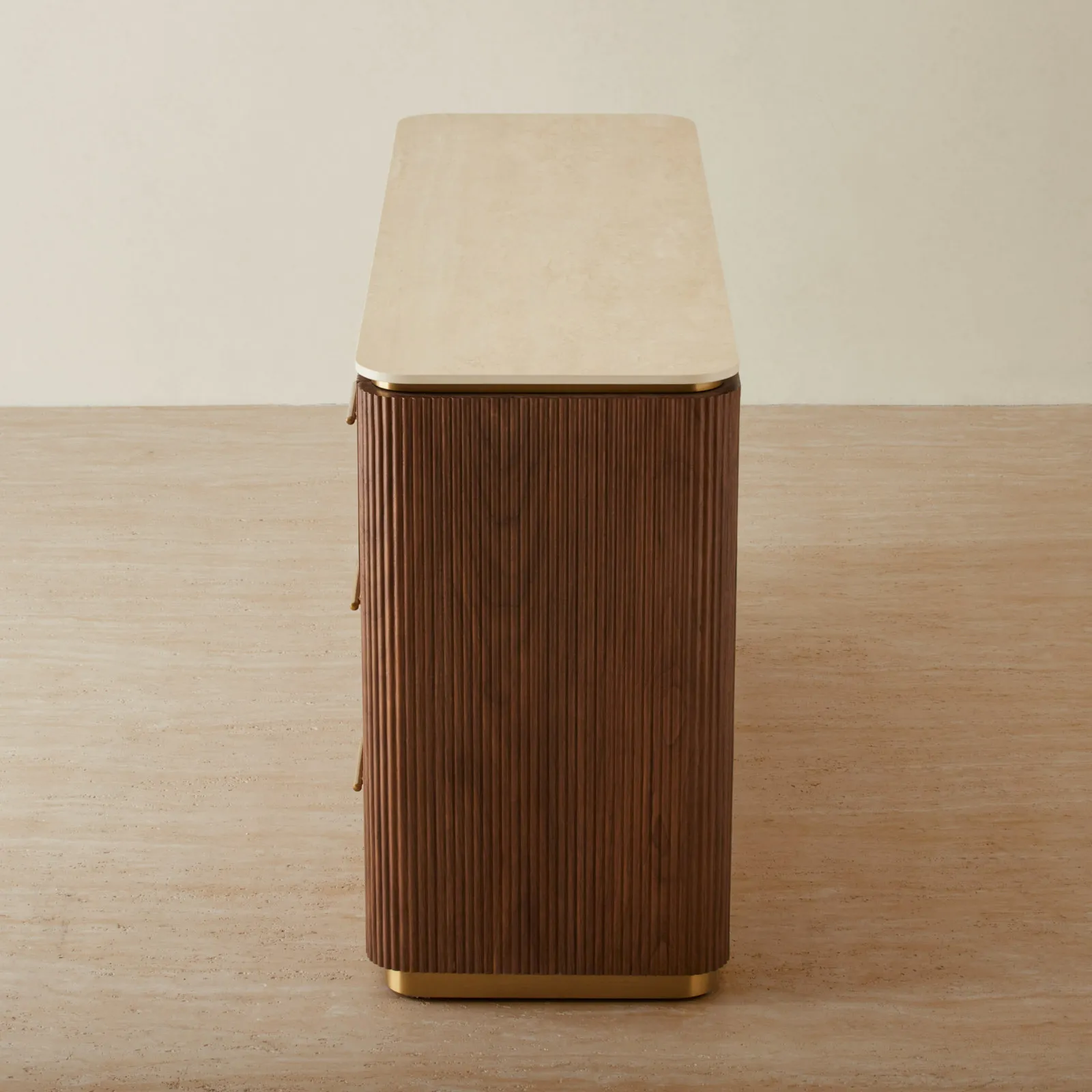 San Pierre Walnut Veneer Dresser – Travertine Finish Sintered Stone Top