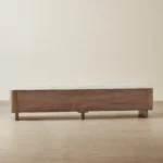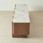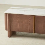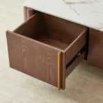 Sir Lionell Gliding White Sintered Stone Entertainment Unit – Walnut Brown Wooden Legs